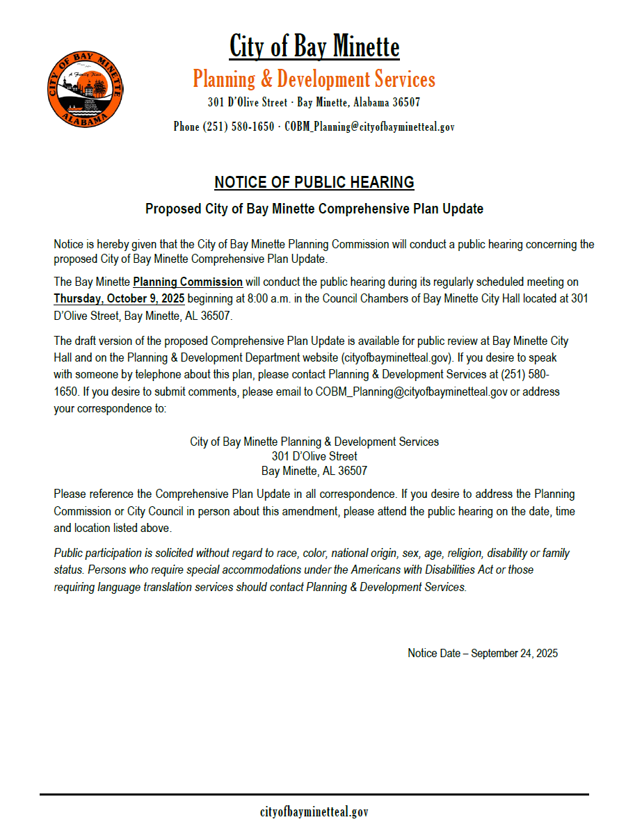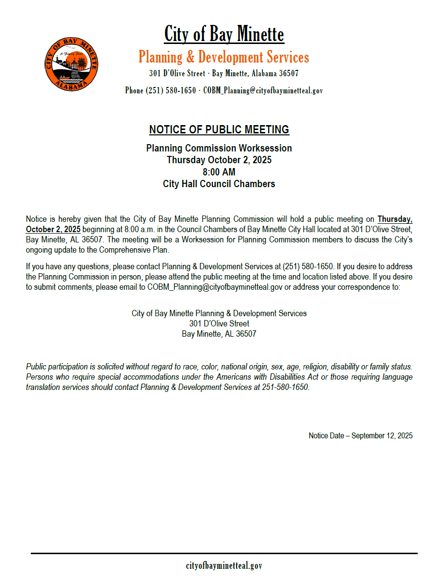2024-2025 Bay Minette Planning Commission and Board of Adjustment Schedule
