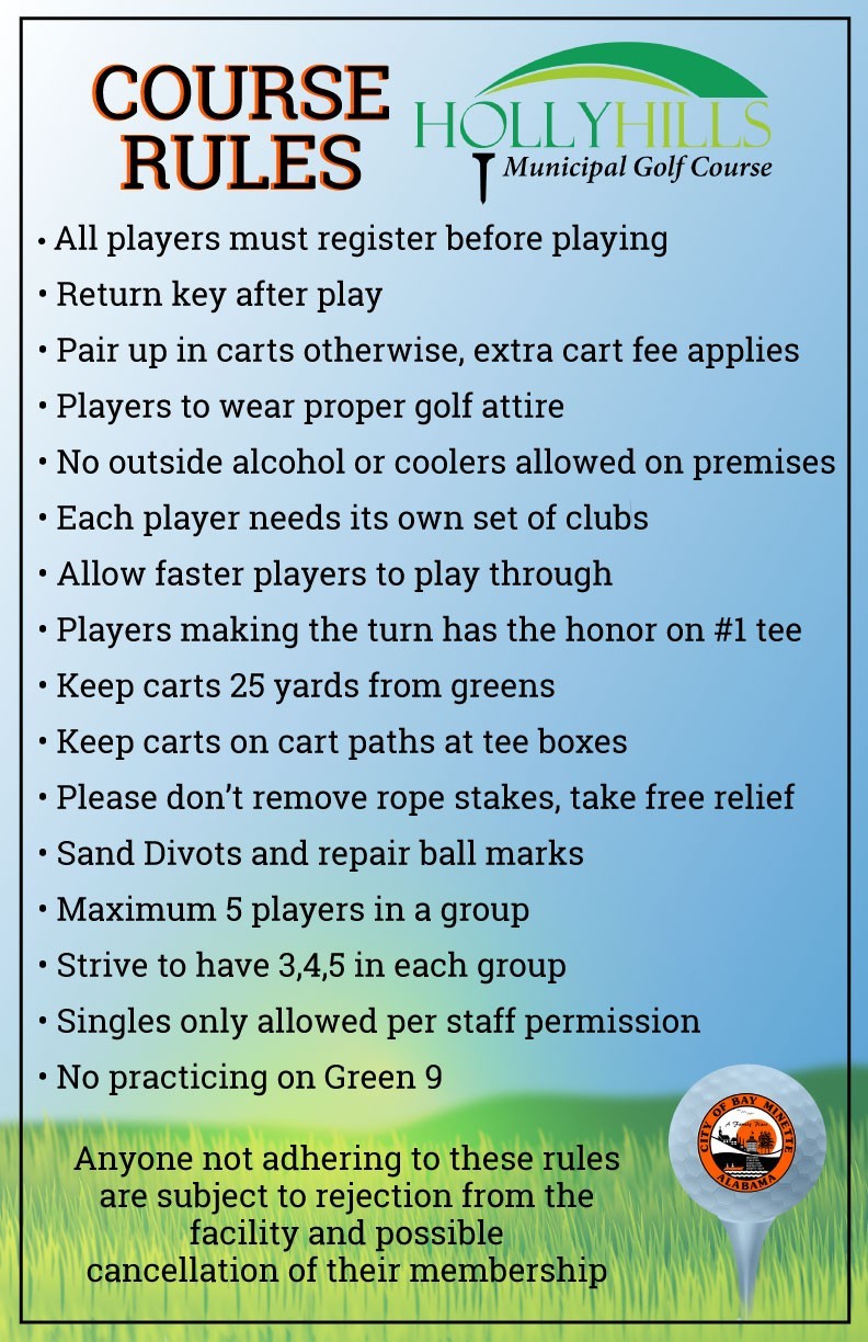 Holly Hills Municipal Golf Course is just seven miles south of Bay Minette on Alabama 59/US 31. It is located an hour north of Gulf Shores and 45-minute drive from Mobile.
